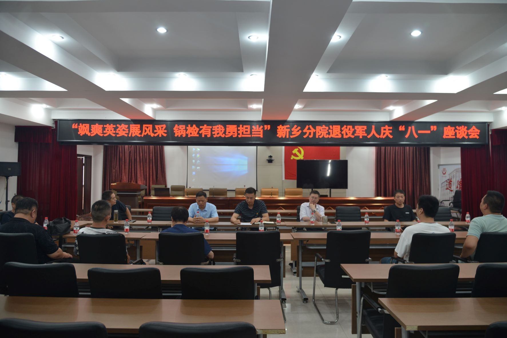 为庆祝中国人民解放军建军95周年,8月1日下午,新乡分院在四楼会议室召开“英姿飒爽展风采 锅检有我勇担当”退役军人庆“八一”座谈会。新乡分院班子成员与13名退役军人参会并展开深入交流。