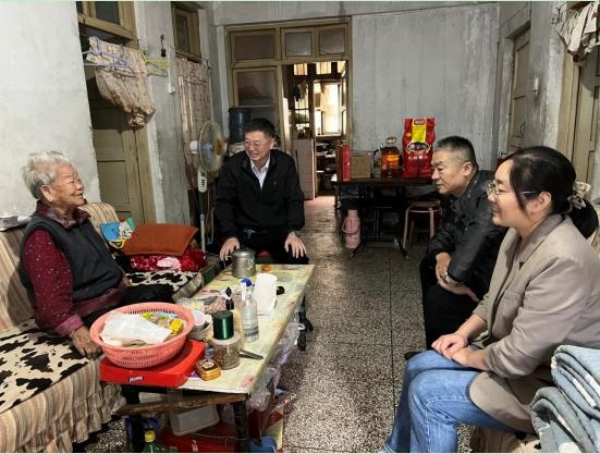 裴渐强副院长一行同95岁高龄的刘善玲同志进行亲切交谈,详细了解她的基本生活情况、身体状况、子女照顾情况、存在的困难等,叮嘱老人雨天路滑,注意安全,并祝愿她节日快乐、健康长寿、阖家幸福。