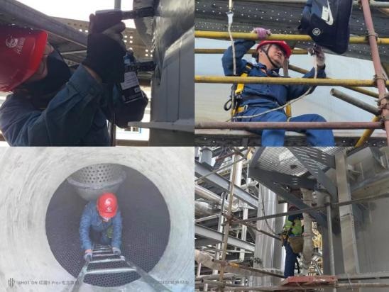 新乡分院四名检验人员齐心协力,共同制订检验方案,协同配合,在高温、高空、高危等极端环境里,连续奋战,以实际行动践行“特别能吃苦、特别能战斗、特别能忍耐、特别能奉献”的四特精神,以攻坚的勇气、专业的姿态和全力保障受检设备安全运行的决心,圆满完成了检验任务。