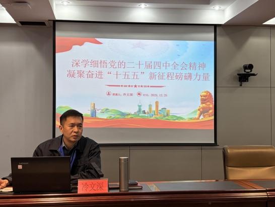 冷文深同志以“深学细悟党的二十届四中全会精神 凝聚奋进‘十五五’新征程磅礴力量”为主题,围绕五个方面进行了系统阐释和深入解读:一是深刻阐释党的二十届四中全会的重大意义与核心内涵;二是深入解读习近平总书记高度重视“十五五”规划编制的战略考量;三是全面回顾“十四五”以来取得的主要成就与宝贵经验;四是梳理解析人民日报、新华社等权威媒体重磅文章传递的重要精神与政策信号;五是详细阐述二十届四中全会擘画的国家未来发展宏伟蓝图与战略部署。